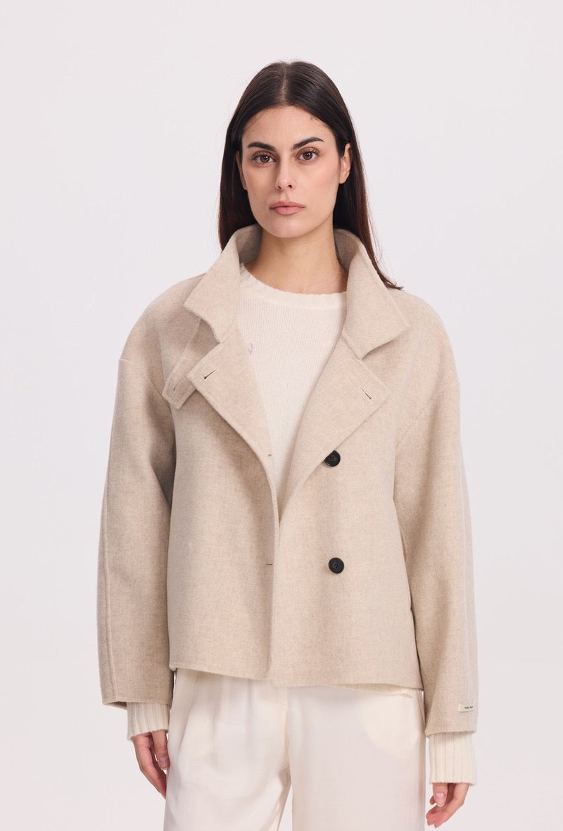 Double-faced wool, super light and warm too 80% wool Loose fitting Contemporary length