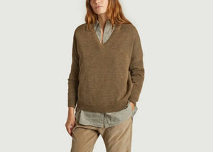 Oversized wool and alpaca-blend sweater, V-neck, drop-shoulder in a beautiful light beige 'Yuca' brown colour V-neck, drop-shoulder Oversize fit - go down a size Made...