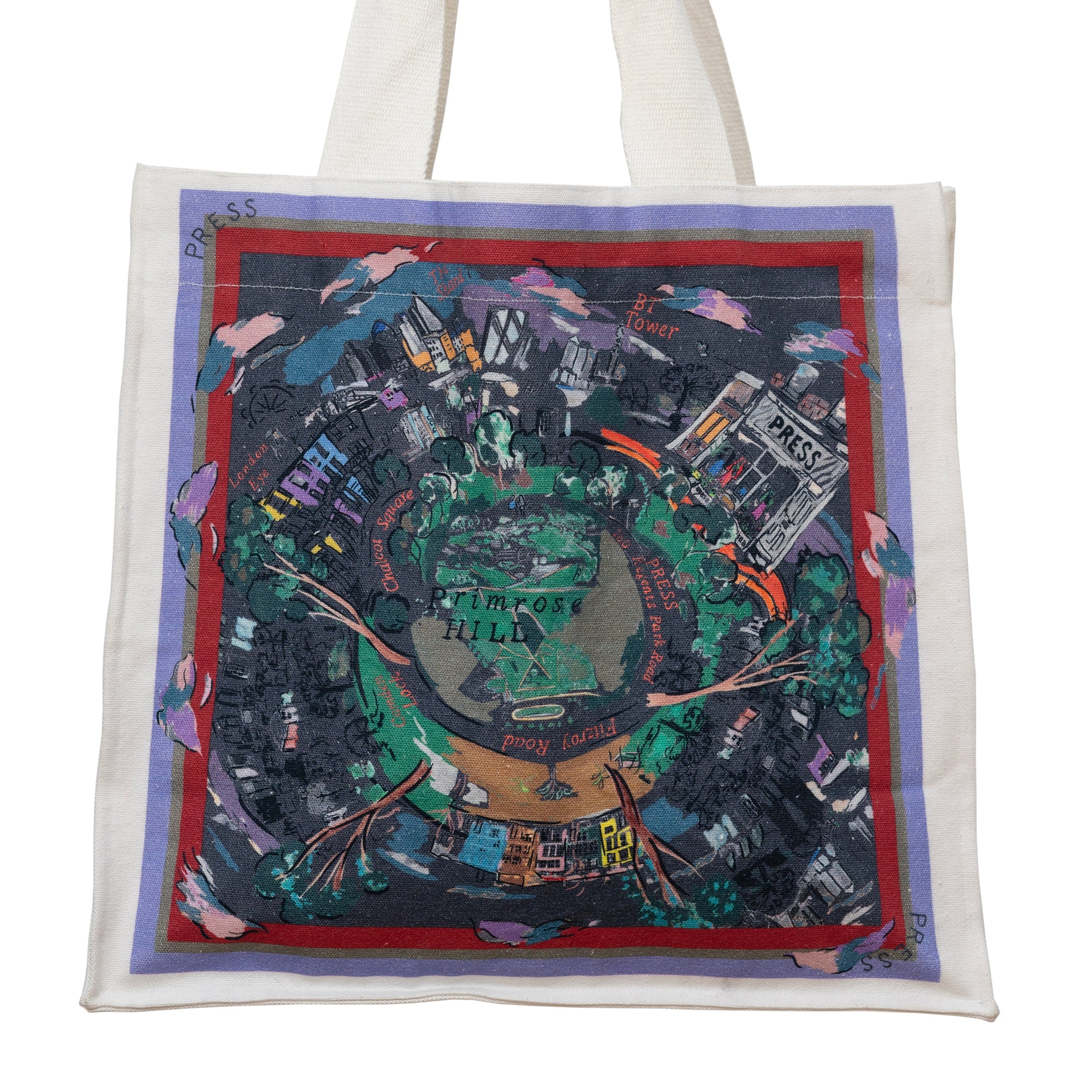 Limited edition, this hand-drawn artwork original is made up of contemporary colours with a striped trim of green, yellow and purple Featuring landmarks including Camden,...
