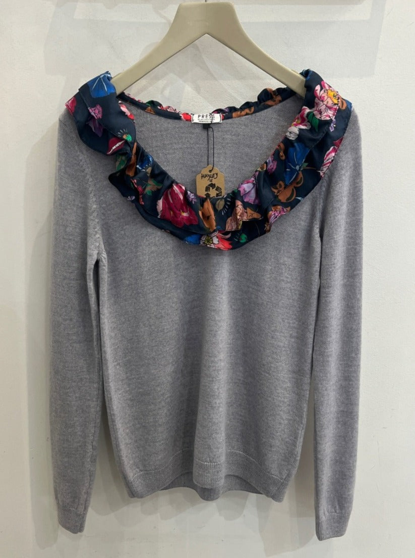 Made in the UK from Hinchcliffe lambswool, the trims have all been applied by hand in England. Upcycled silk fabric sleeves, printed with our own...